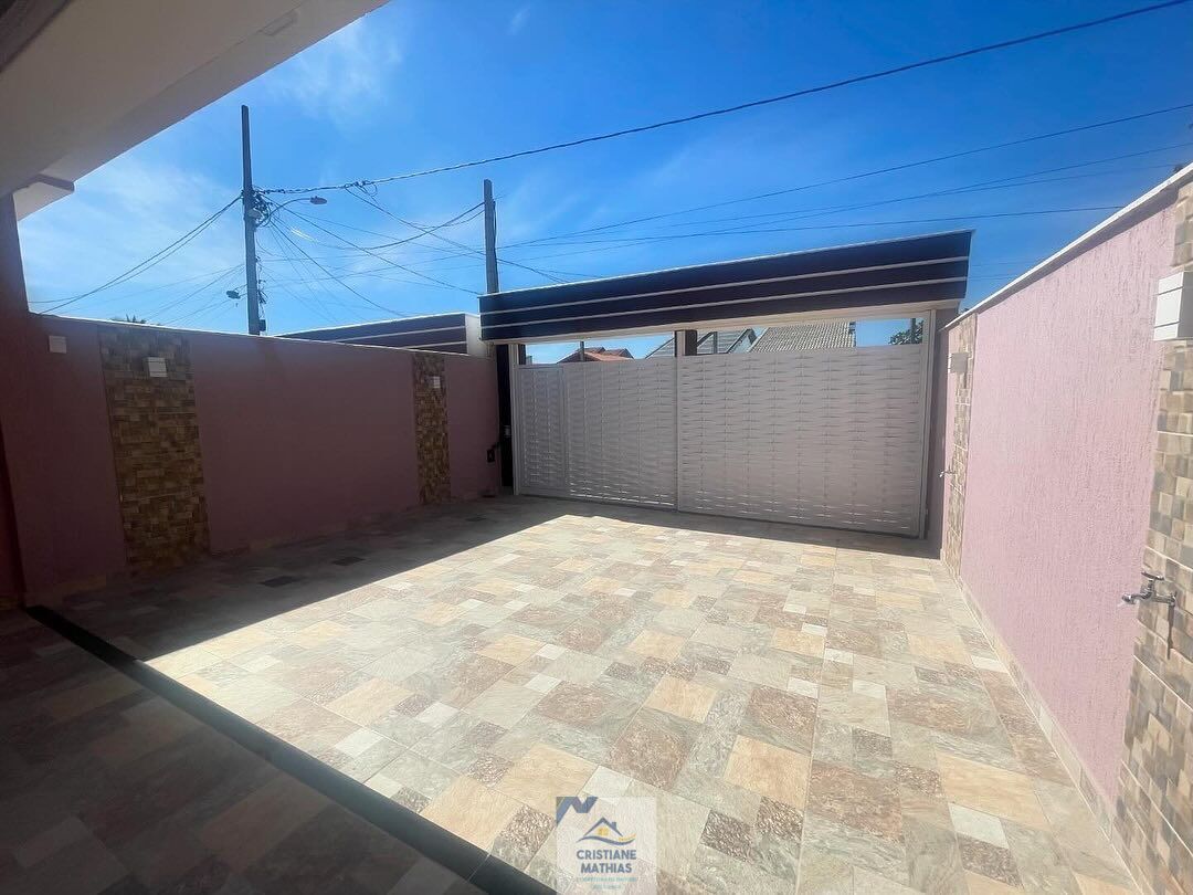 Com 3 quartos, sendo 2 suítes, cozinha americana, pia com bancada em granito, sala ampla toda em porcelanato e rebaixamento de gesso com luminária de led, banheiros com blindex, área de serviço coberta, garagem para 2 carros, 2 portões de alumínio branco.